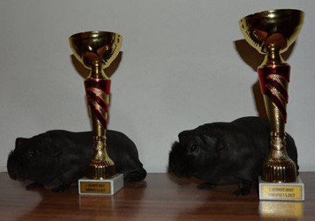 Opravdu po dlouhé době píšeme na webu nějakou tu novinku. Ráda bych spíše představila, čím se věnujeme a chceme věnovat. Za posledních pár měsíců nás velmi zaujala barva blue. Prvním krokem bylo pořízení skg černého samečka s blue genem, Doda Nice Surprise, a to koncem roku 2016. Až začátkem roku 2018 jsme se rozhoupaly ke koupi naší první blue hladké samičky, Yferte ze Svinova, a o pár týdnů později následovaly další. Hladká blue samička Yanita Metropol a skg černá samička s blue genem, Afra Metropol. Naše první blue mimča přišla v listopadu 2018, kdy Yferte, nakrytá naším černým skg tanem Umpa Lumpou, porodila krásných 5 mimin a mezi nimi i 3 modré samičky, 2 tan modré (skg a hladkou) a modrou skg samiču. Upřímně, byl to vrh, ve kterém jsme ověřovaly, zda náhodou Umpa Lumpa něco po černém Dd tatínkovi zdědil. Ano, gen tam byl a naše radost byla převeliká. Následovalo několik dalších vrhů, ze kterých bych vypíchla vrh narozený 1.1.2019 se samičkami Pandorou (hladká blue) a Parisou (skg blue s amber). Pandora byla první, se kterou jsme si vyzkoušely vystavovat našeho prvního hlaďáka. Musím říct, že obě holky se moc povedly, jsou krásné, s minimálními kroužky. Pandora měla i pěkné úspěchy na výstavách, kdy zatím je neof. JCH, CZCH a GCZCH, kdy získala přes 20 CAC a její nejvyšší bodvé hodnocení bylo 97,5 b. Rodila se nám další mimina a hlavně, začalo se to u ná modrat. Momentálně nám dorůstají skg modré samičky, i samečci, máme i pár skinníků Dd. Pořídily jsme nové posily pro změnu krve, hladké samečky, solid zlatého aguťáka Dd a modrého samečka z chs Cavia Bohemia. Momentálně máme zaděláno snad už i na modré naháčky, přičemž v prosinci 2019 k nám přicestuje skg blue sameček z chs Parakas, Ivšo, moc děkuji! S tím máme také obr plány. Doufáme, že se to u nás bude modrat ještě víc, ale i tak, za současný stav jsem velmi ráda. Před rokem bych tomu ještě nevěřila....